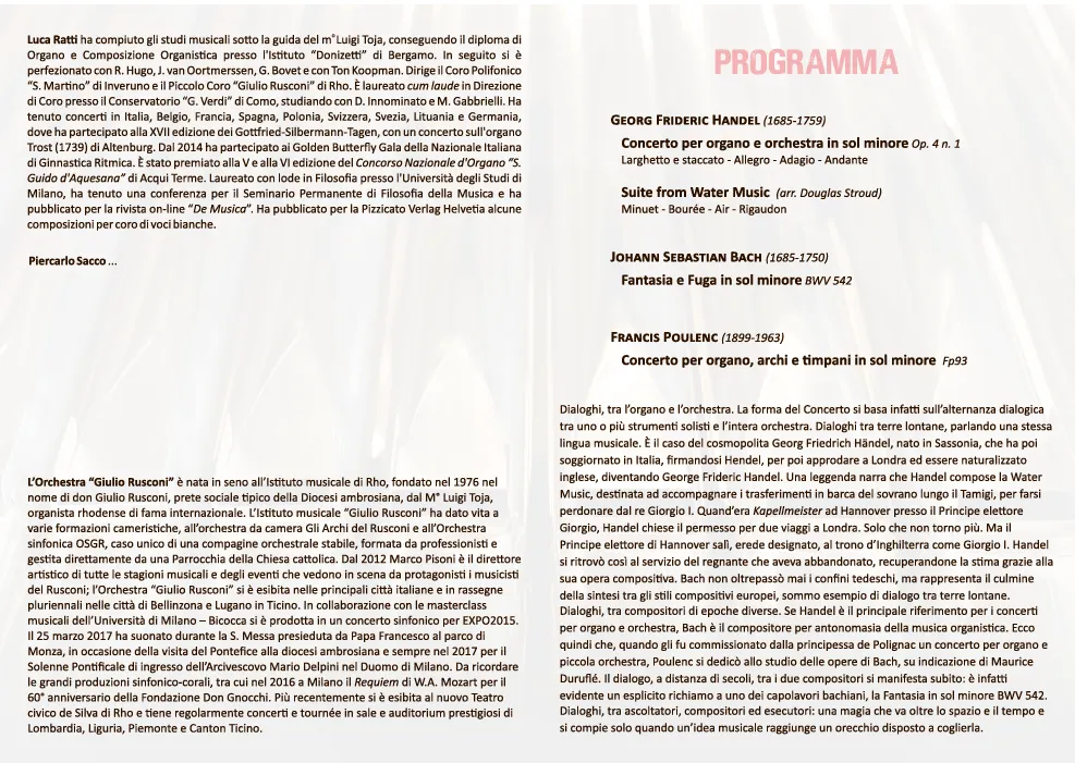 Dialoghi Musicali”: Luca Ratti e l’Orchestra Giulio Rusconi danno vita a un viaggio emozionante tra Handel, Bach e Poulenc, tra organo e orchestra, in un dialogo senza tempo.