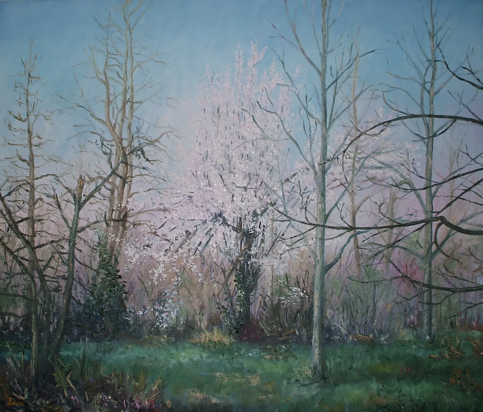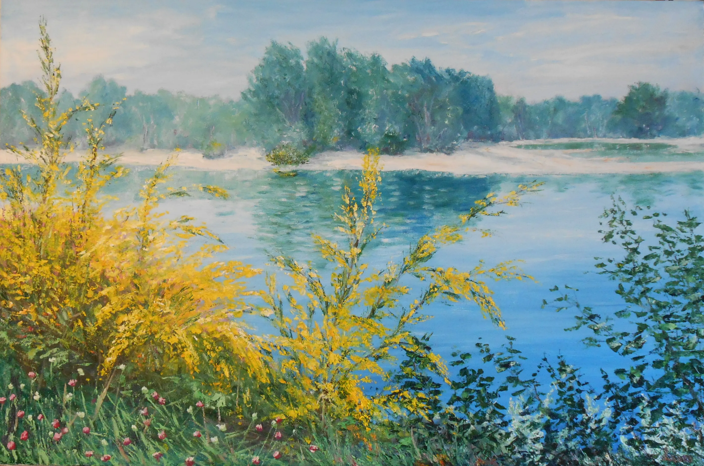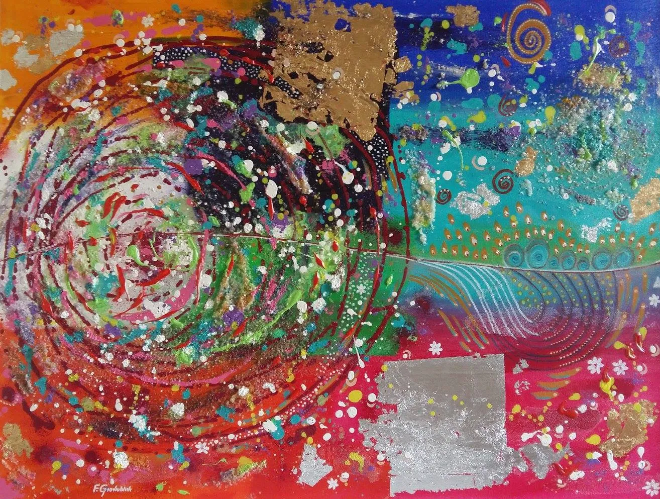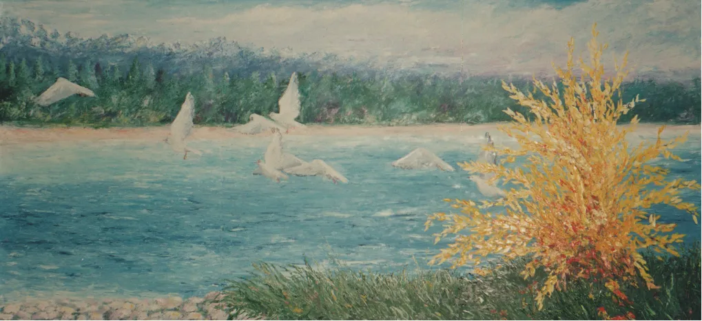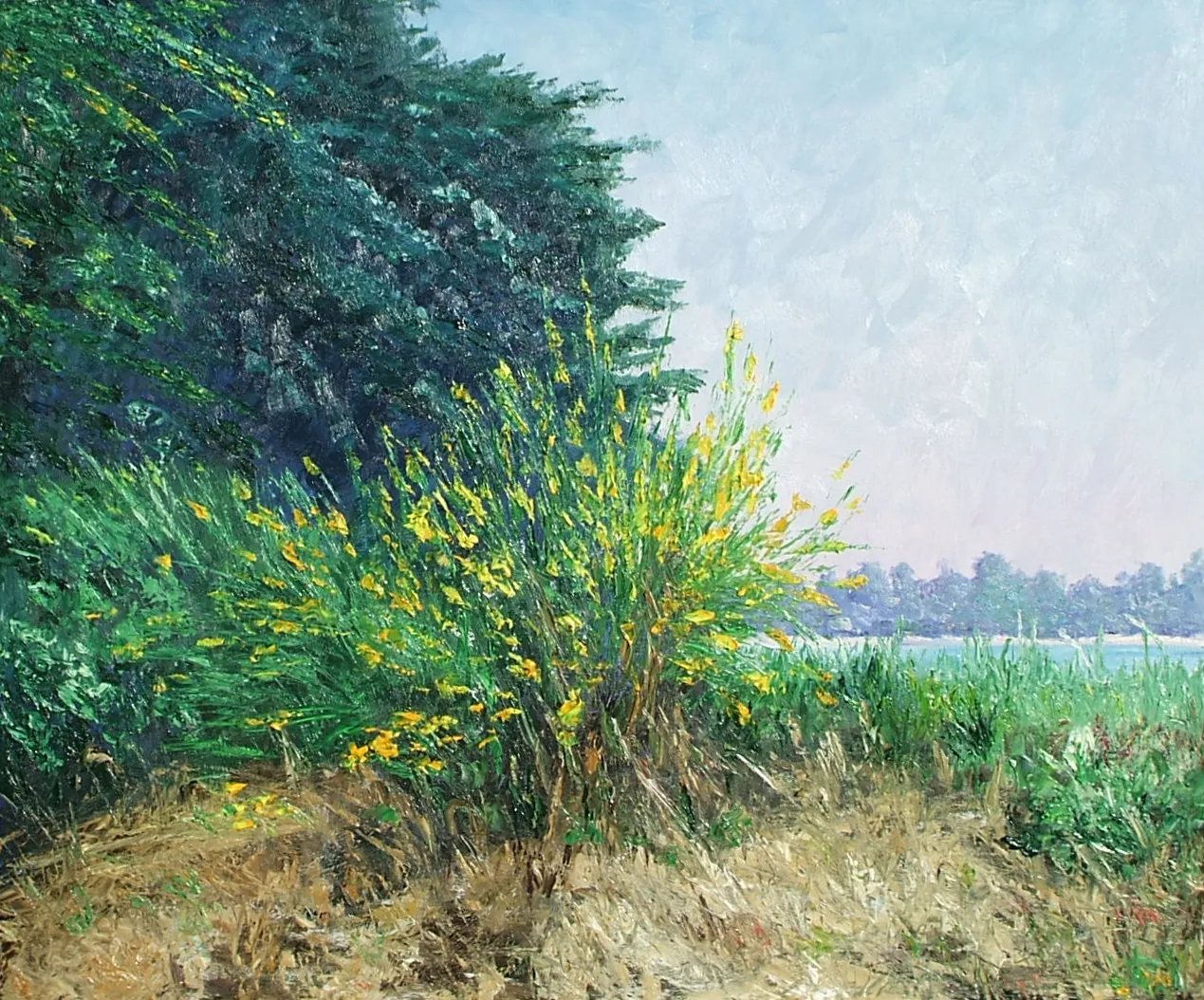 L’artista osserva la luce con curiosità e interesse, scomponendola nei suoi colori. Dipinge senza mescolare, creando superfici vive e sensazioni visive con una tecnica rapida e spontanea.