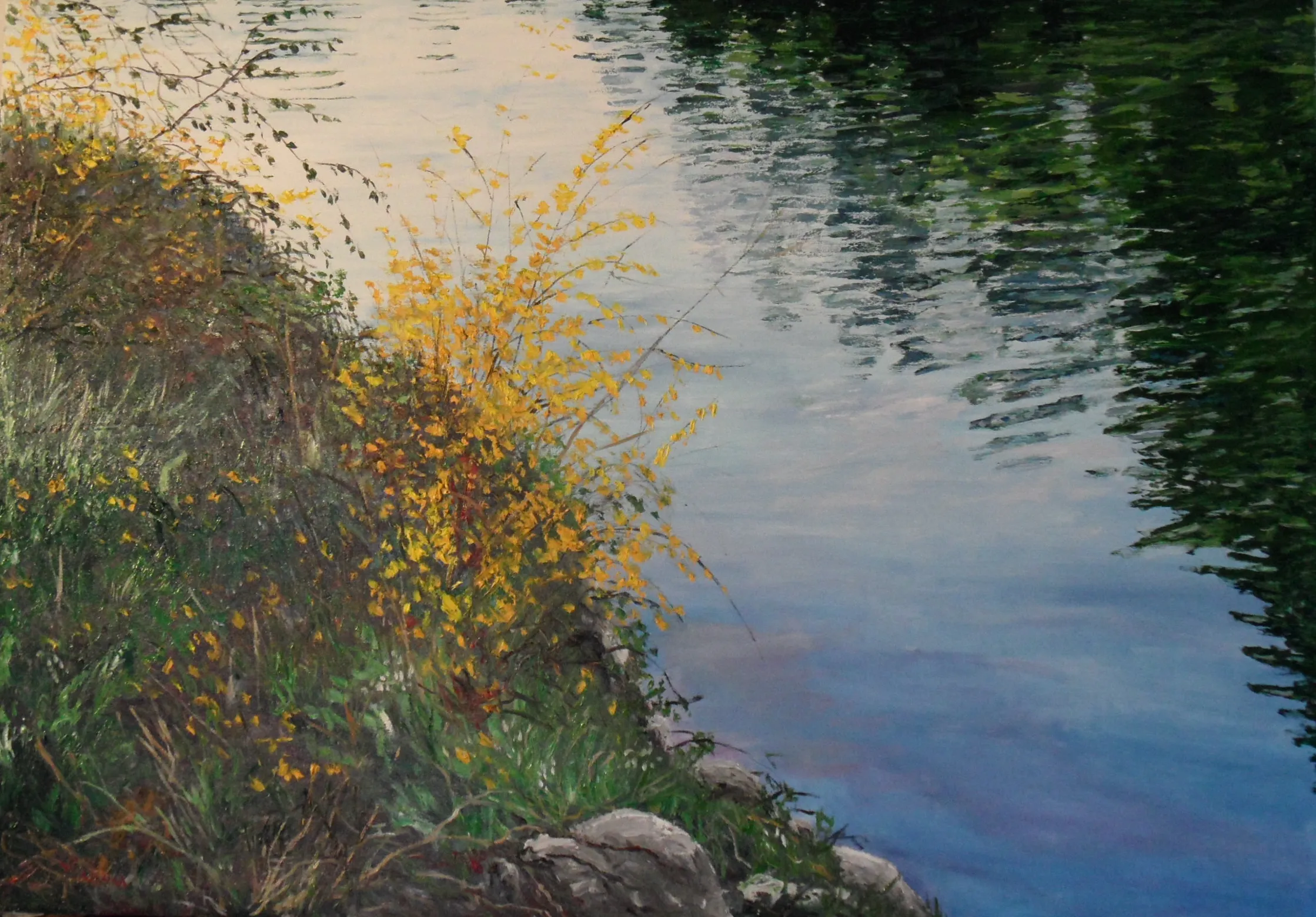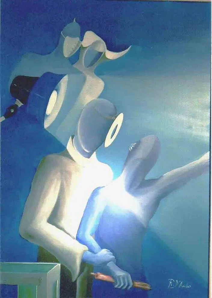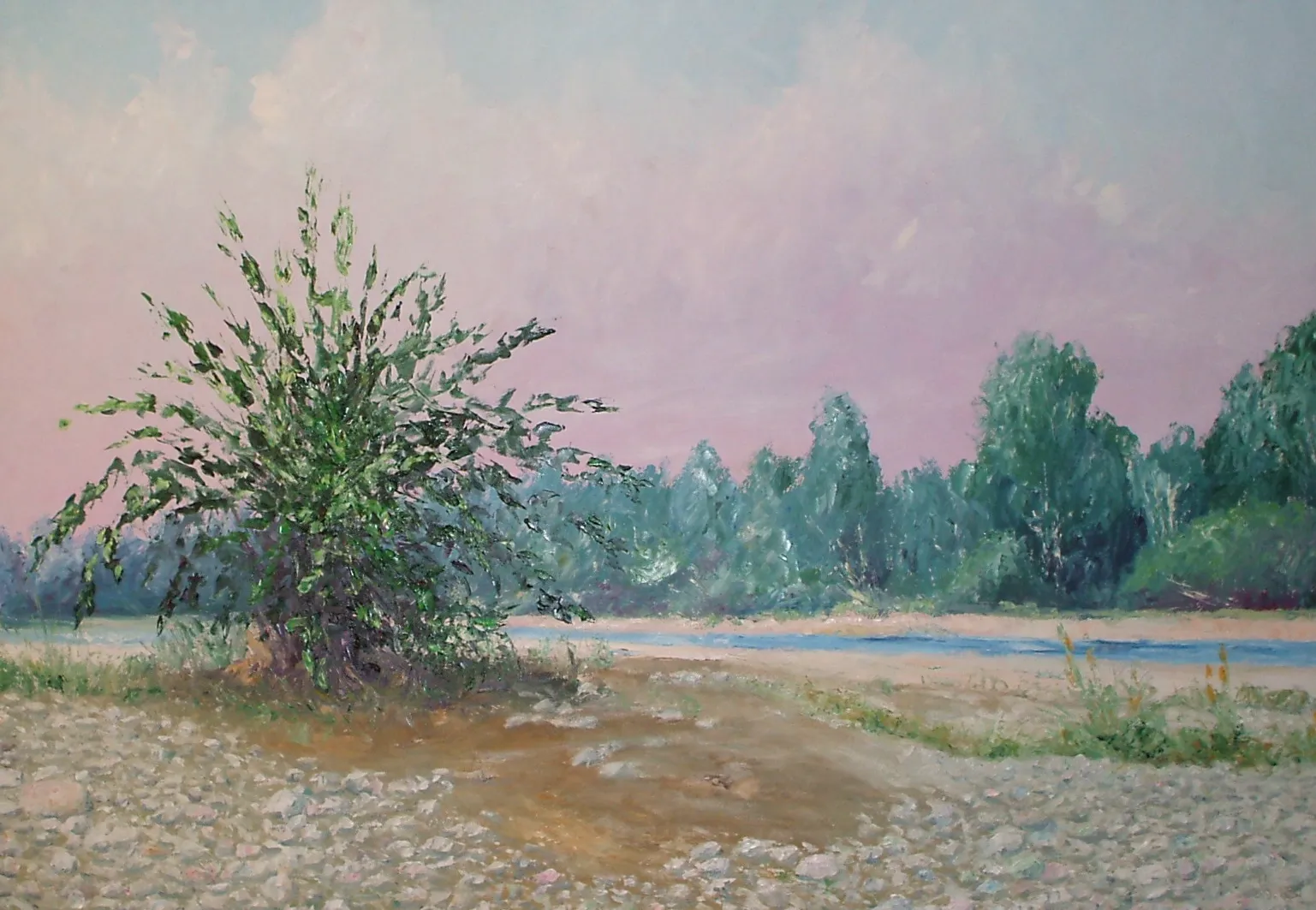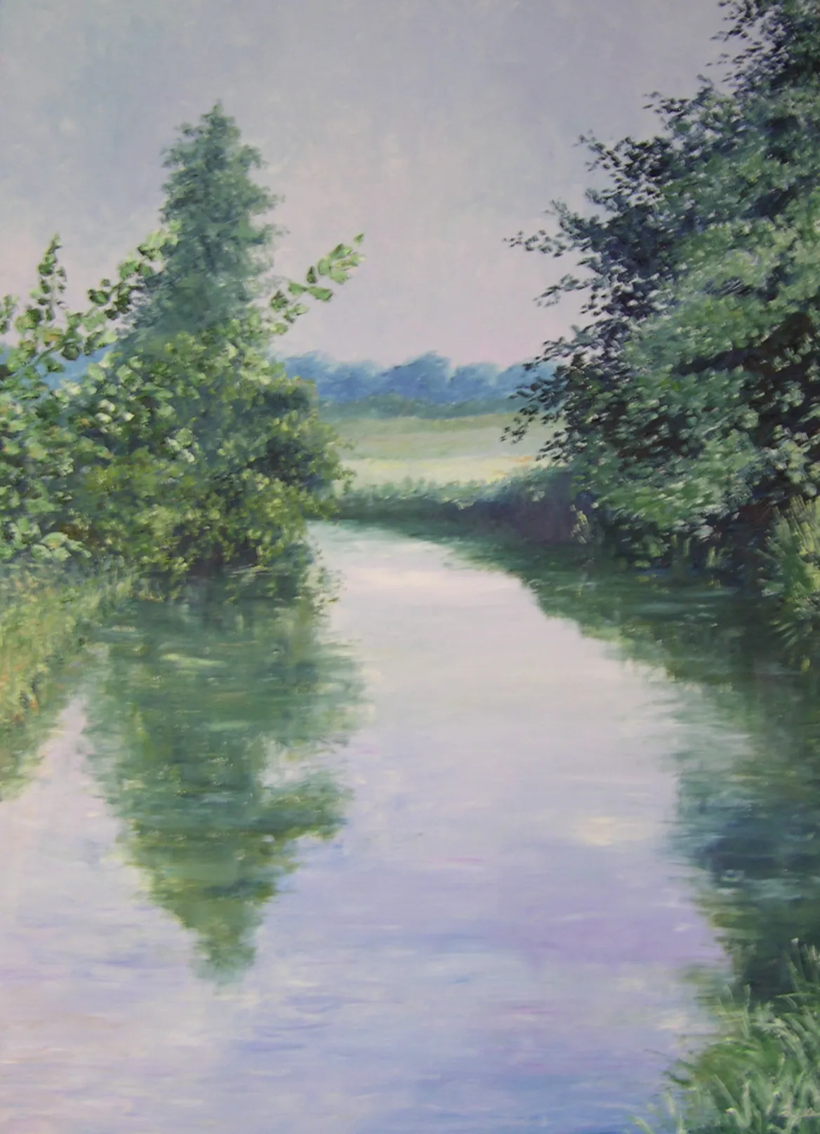 L’artista osserva la luce con curiosità e interesse, scomponendola nei suoi colori. Dipinge senza mescolare, creando superfici vive e sensazioni visive con una tecnica rapida e spontanea.