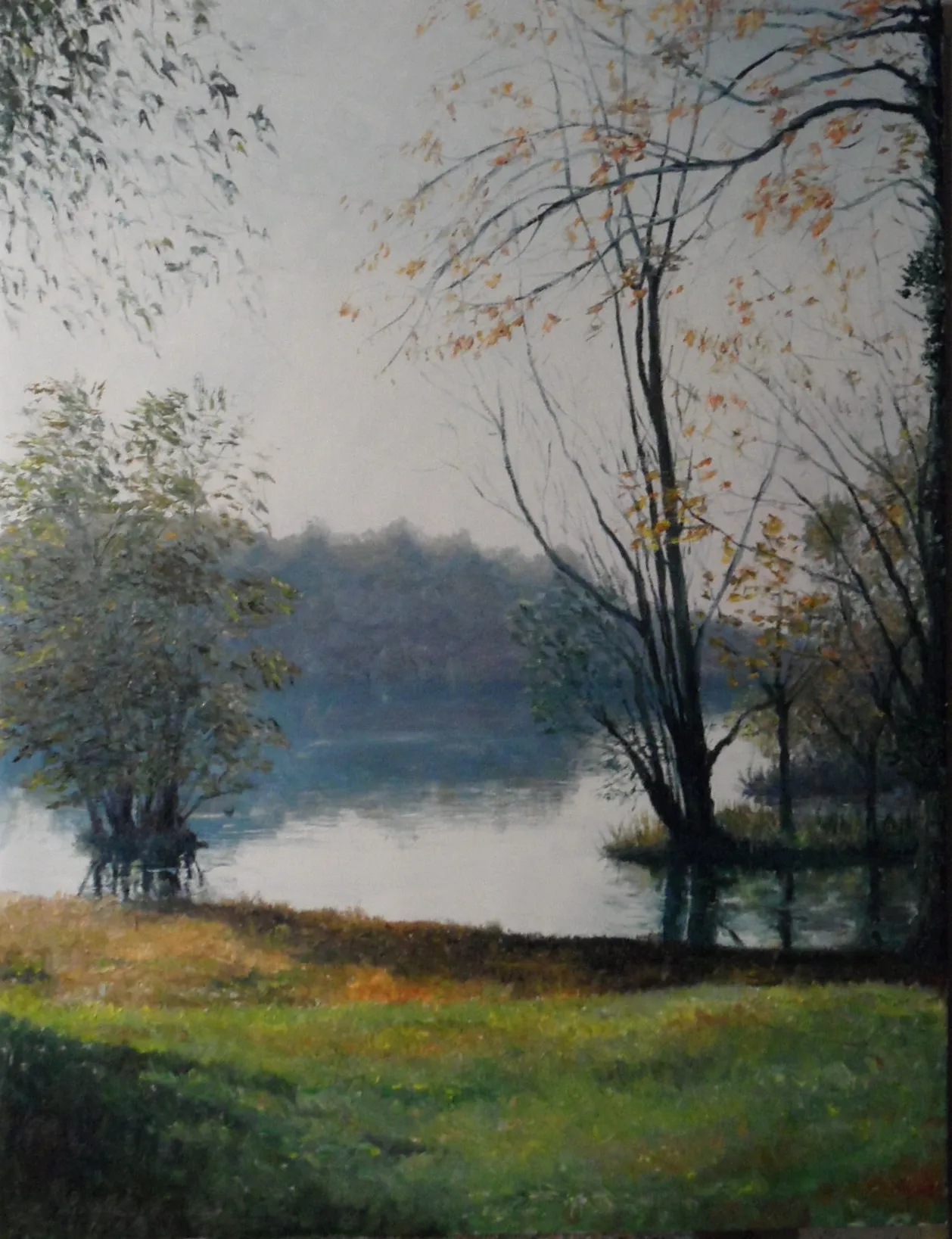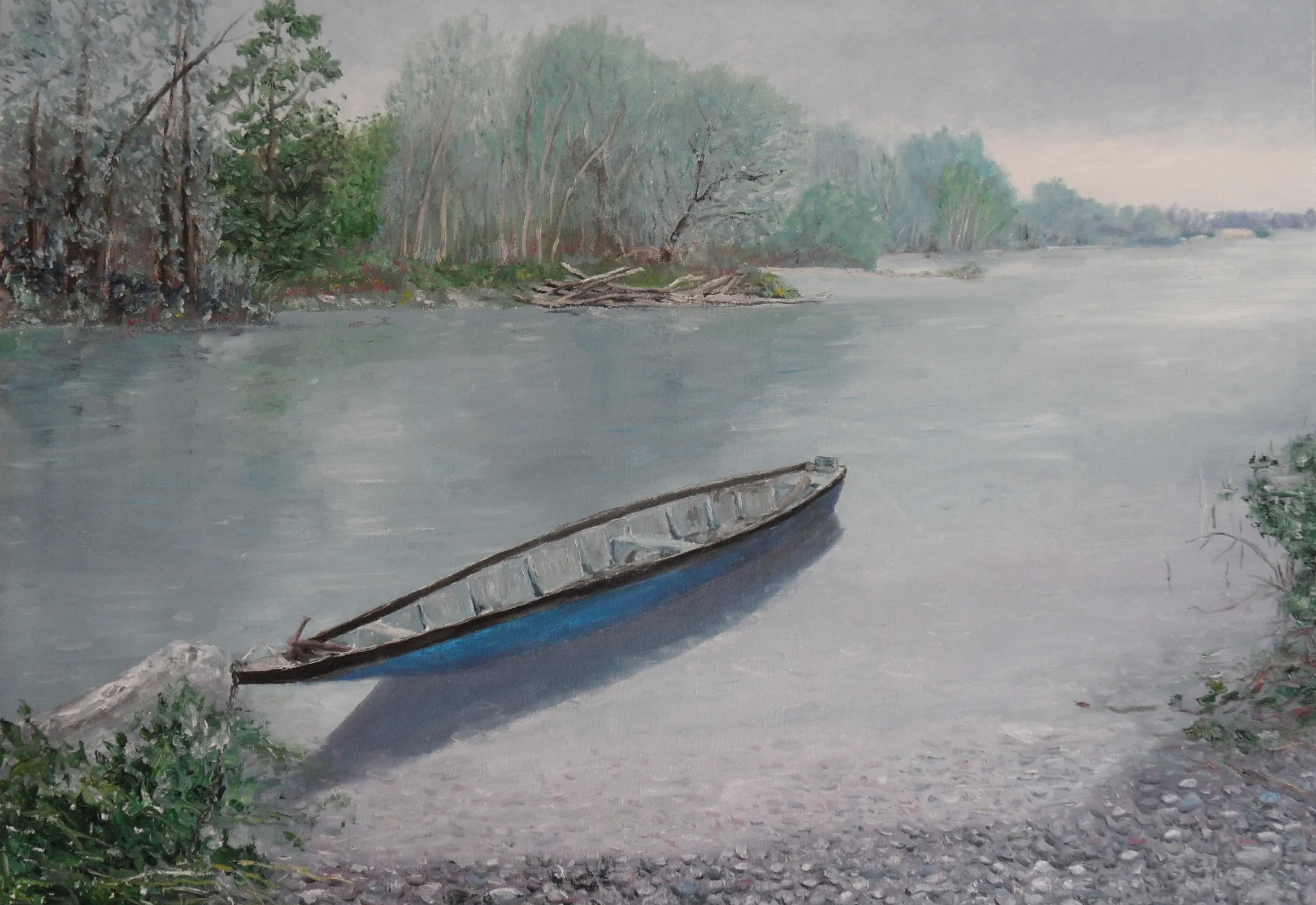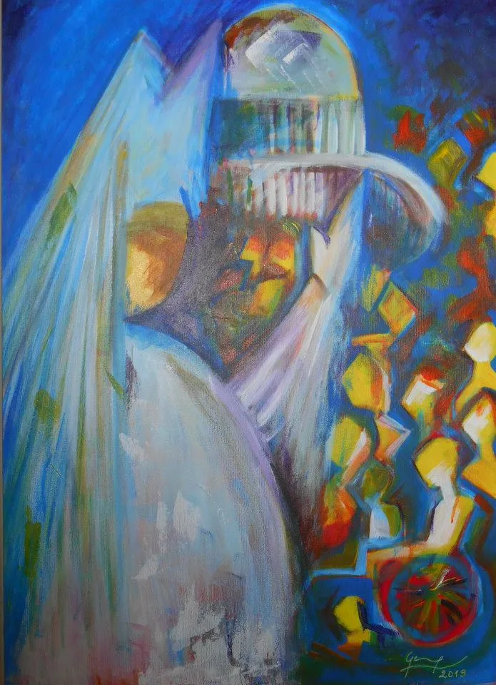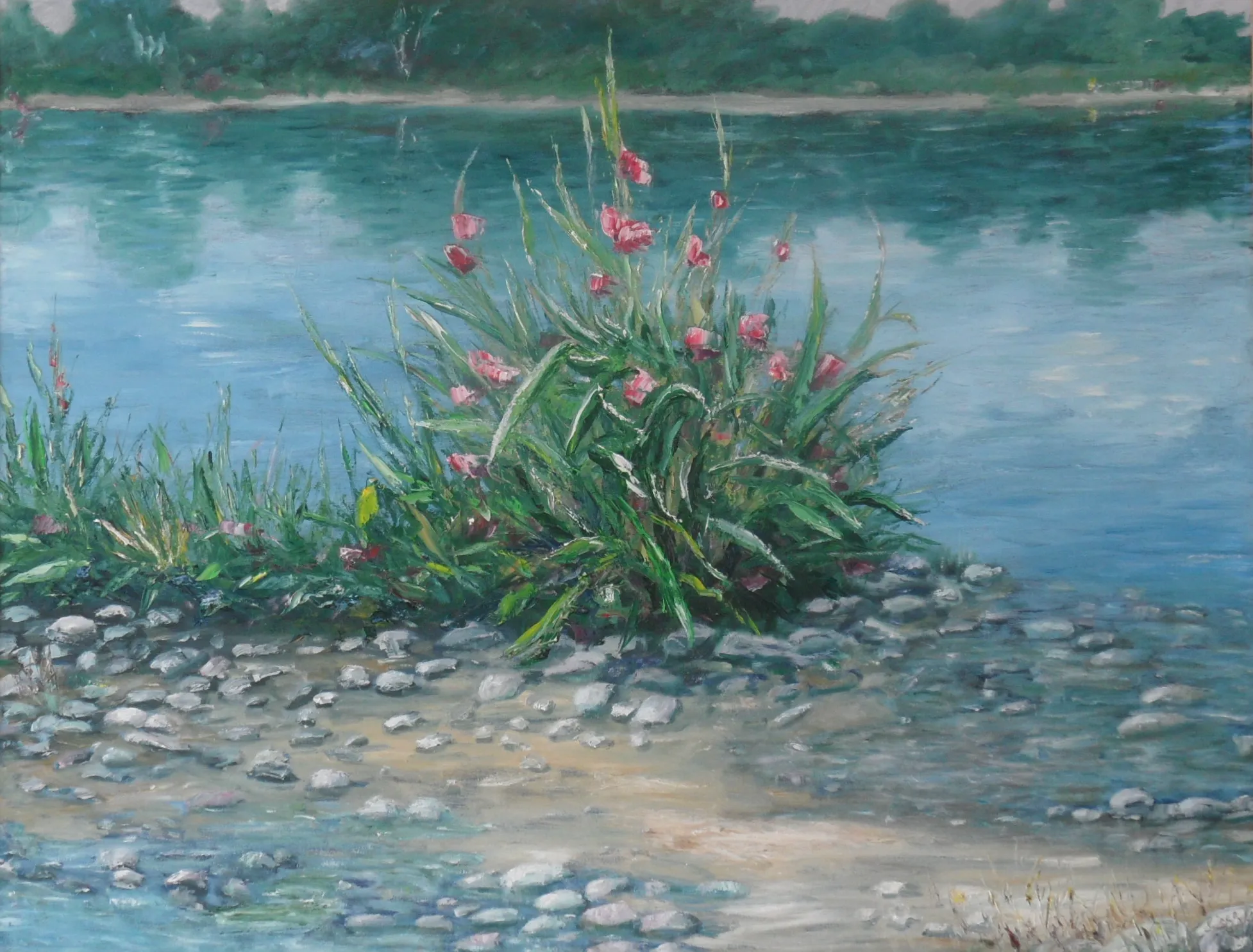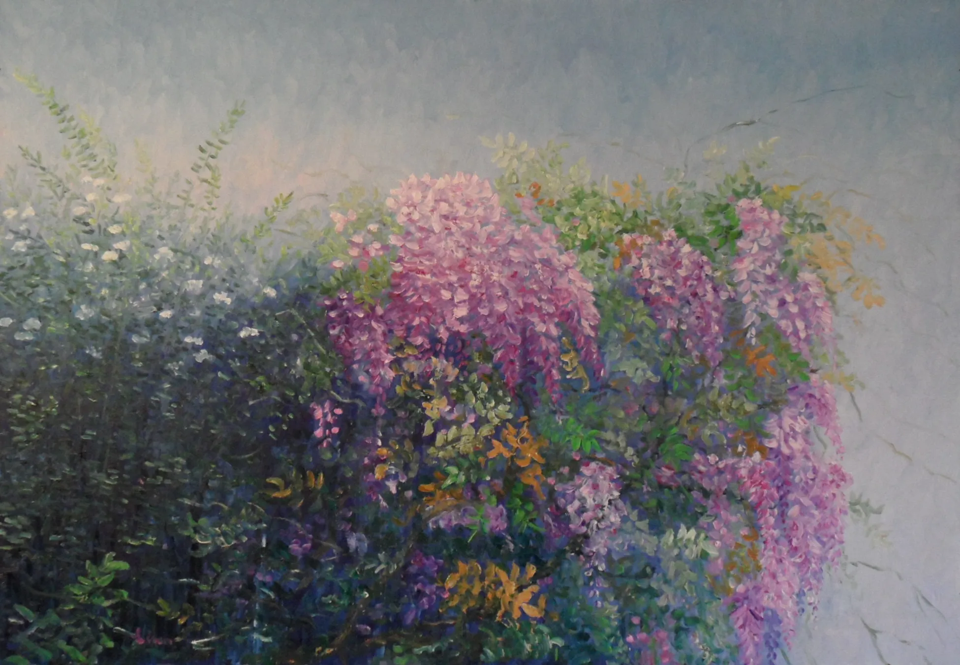 L’artista osserva la luce con curiosità e interesse, scomponendola nei suoi colori. Dipinge senza mescolare, creando superfici vive e sensazioni visive con una tecnica rapida e spontanea.