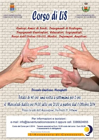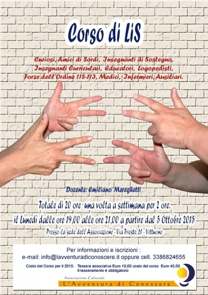 Corso di LIS dedicato a curiosi, amici di sordi, inseganti di sostegno, insegnanti curriculari educatori, logopedisti, forze dell'ordine 118 e 113, medici, infermiere e ausiliari per un totale di 40 ore.