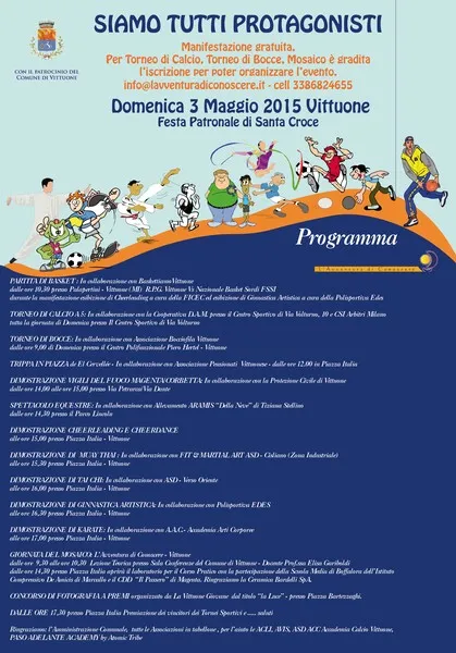 Evento gratuito a Vittuone con tornei sportivi, esibizioni, dimostrazioni, laboratori di mosaico e concorso fotografico. Attività per tutti, con premi e spettacoli durante la Festa Patronale.