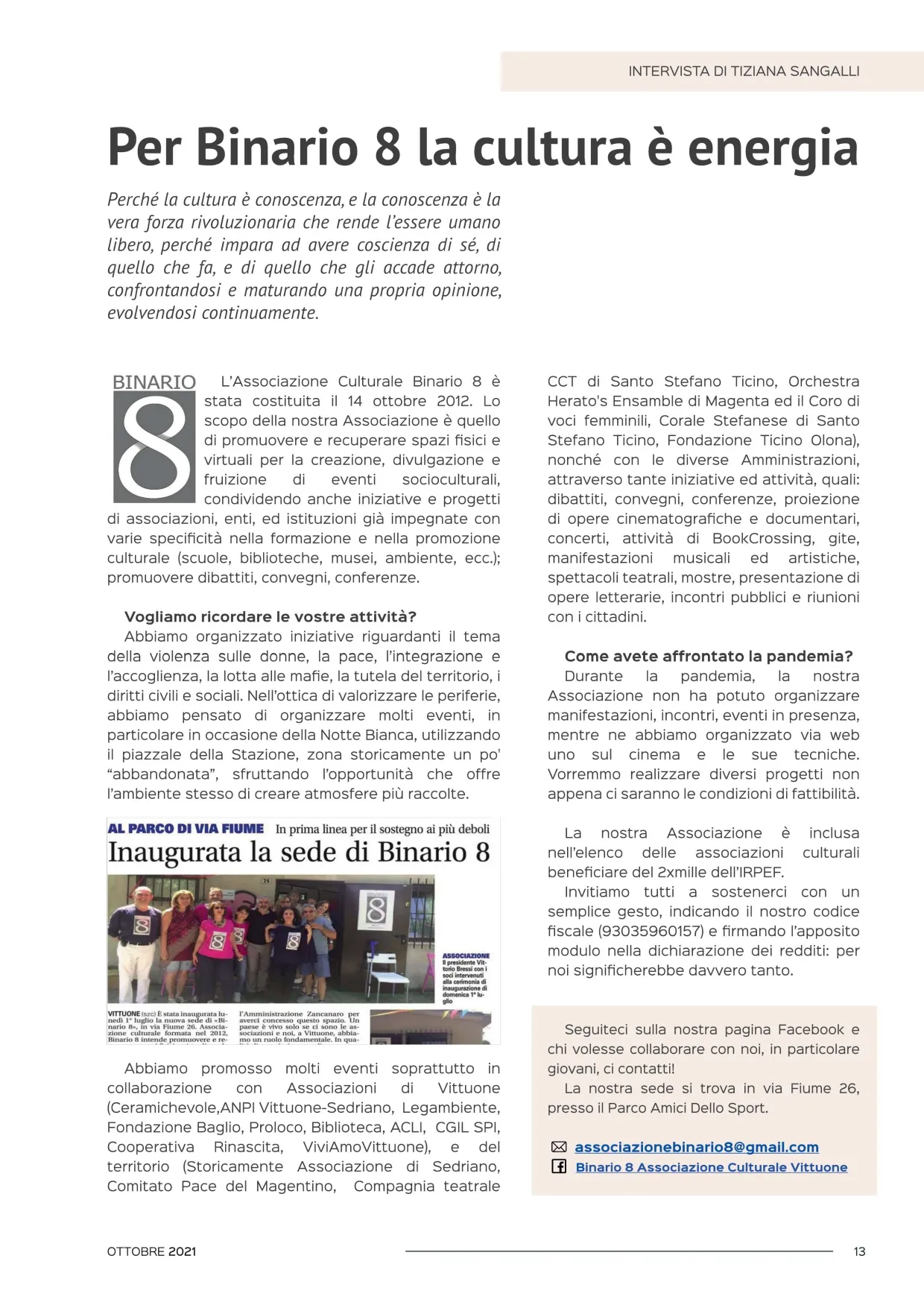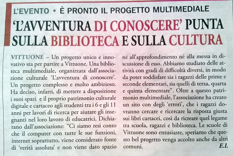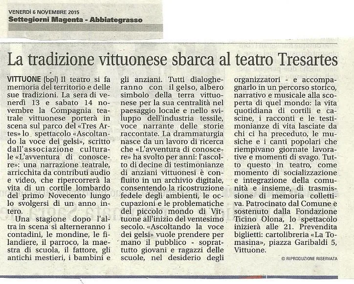 L’Associazione Culturale ha realizzato un progetto sui ricordi di un nato a Vittuone nel 1929, con libro illustrato, DVD e spettacolo musicale il 25 Aprile 2013 al Cineteatro “Tresartes”.