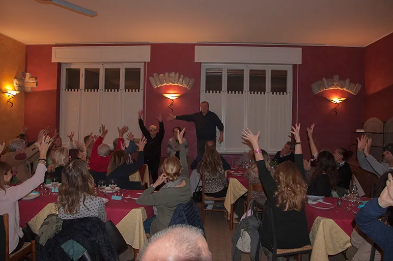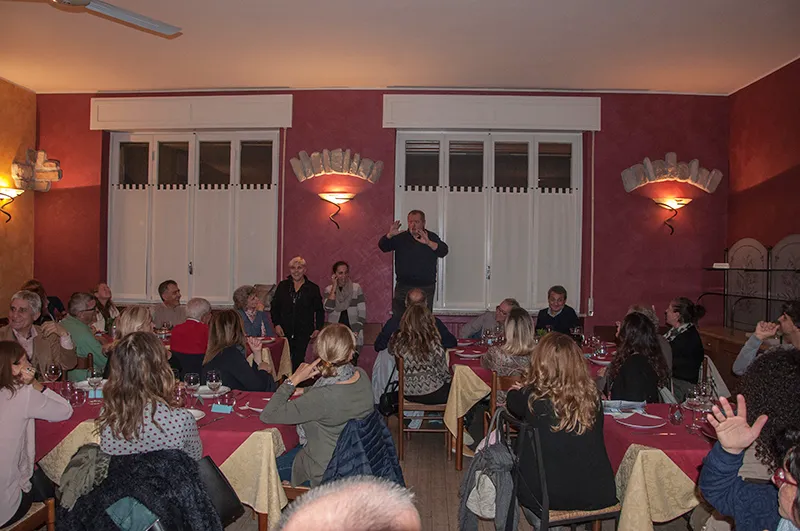 Cena a cura di Marco e Fiorella del Samal con stufato d’asino, trippa, nervetti, polenta, gorgonzola, balli e caffè. Macedonia e frutta dal fruttivendolo Porro, gelato da L’Arte del dolce. Organizzato da Associazione Pensionati Vittuonese e L’Avventura di Conoscere.