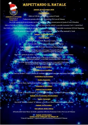 Natale Insieme in Piazza Italia, dalle 10:00 alle 15:30, con stand di associazioni e hobbisti. Banco “Condividiamo il Natale” per lo scambio di addobbi, a cura dell’associazione L’Avventura di Conoscere.