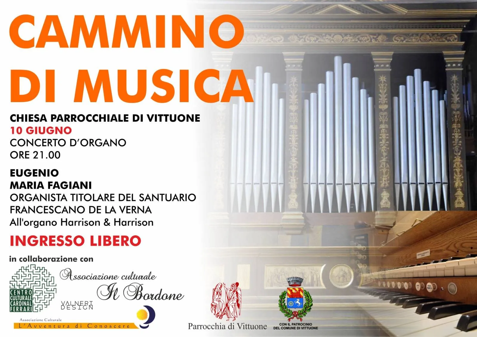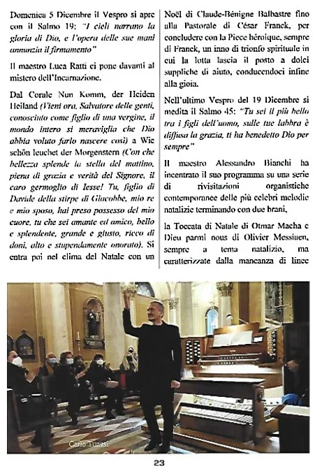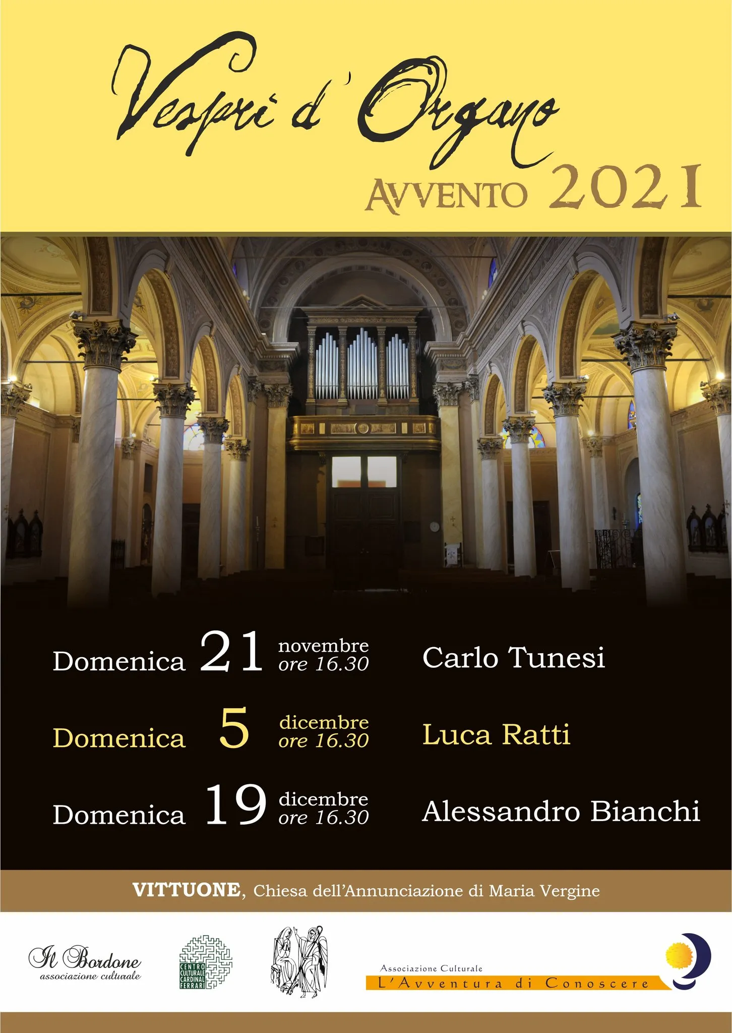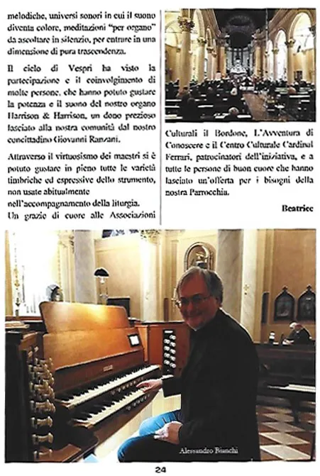 Concerti con i Maestri Carlo Tunesi, Luca Ratti e Alessandro Bianchi alla Chiesa dell’Annunciazione di Maria Vergine a Vittuone, con associazioni culturali e l’organo Harrison & Harrison donato da Giovanni Ranzani.