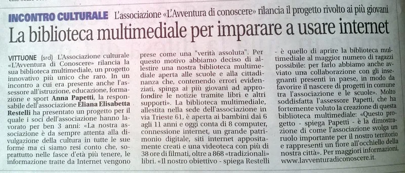 La nostra Associazione offre spazi e materiali culturali per laboratori dedicati a bambini dai 6 agli 11 anni, per stimolare senso critico e approfondimento oltre l’uso passivo di internet e del computer.
