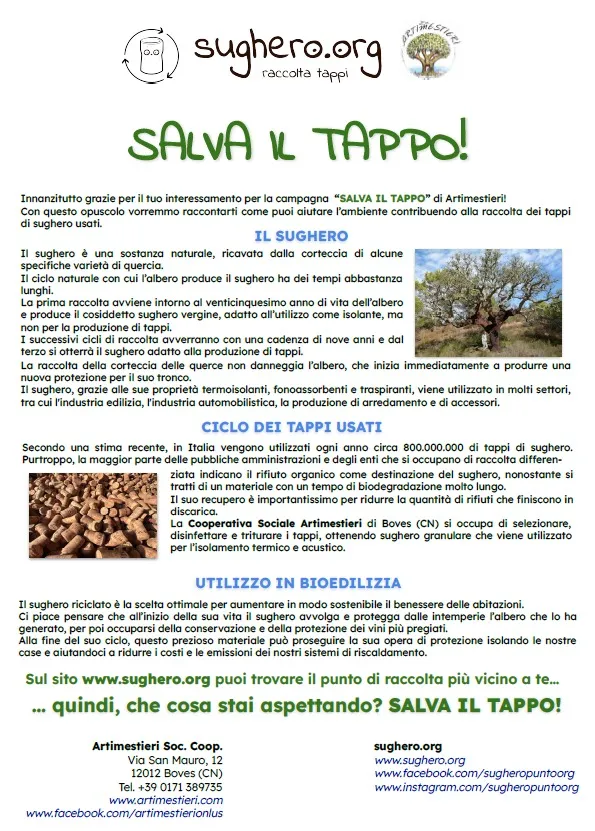 Noi dell’associazione ci siamo affidati a Sughero.org perché crediamo in una buona azione concreta: trasformare un semplice tappo in un gesto di rispetto per l’ambiente e il futuro di tutti.